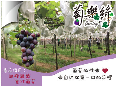 品牌特色:萄樂絲園主帶領巨峰葡萄寶寶和蜜紅葡萄寶寶,為整個果園帶來樂趣,除此之外,我們還有規劃採葡萄FUN遊趣,除了可以在果園內享用葡萄的美味外,還可以體驗農村採葡萄的休閒娛樂。